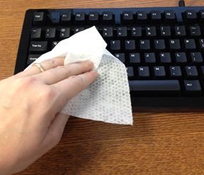 - Don’t let any liquid from the wipe sit for long periods of time on the keyboard.